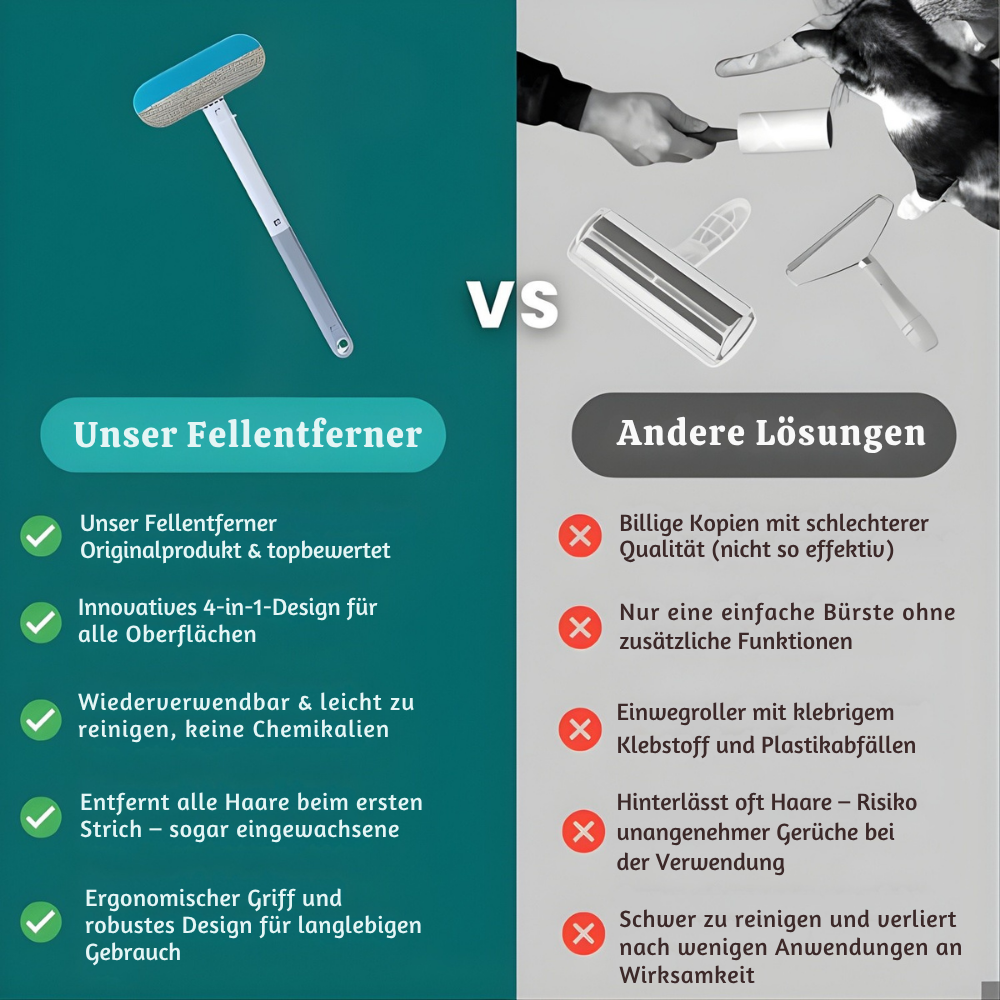 SweepPro™ ist das wiederverwendbare 4-in-1-Reinigungswerkzeug, das Fell, Staub und Fusseln von Sofas, Teppichen, Autositzen und Kleidung entfernt – ganz ohne klebrige Nachfüllrollen, Batterien oder Chaos. Die doppelseitigen Bürstenflächen und der integrierte Schaber greifen tief in Stoffe ein und holen sogar eingelagerte Haare heraus, die herkömmliche Rollen zurücklassen. Geliebt von Tausenden Haustierbesitzern hilft SweepPro™, jeden Bereich frisch, sauber und haarfrei zu halten – und reduziert gleichzeitig Abfall sowie langfristige Kosten.