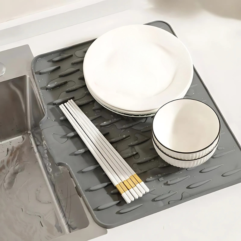 Effizientes Ablauf-Design – AquaGrid™ nutzt konkave und konvexe Kanäle, um den Wasserfluss zu beschleunigen. Ihr Geschirr trocknet schneller, während die Arbeitsflächen makellos und hygienisch bleiben.