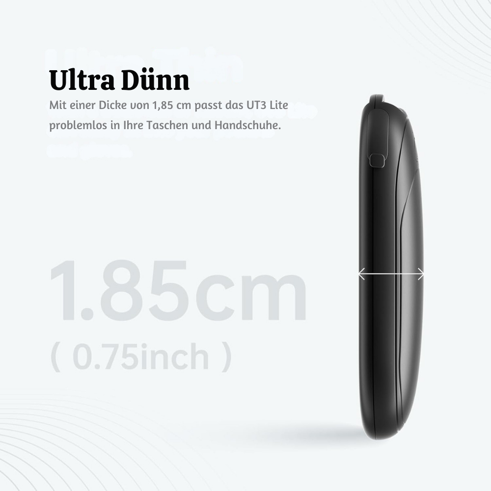 Sofortige, langanhaltende Wärme – Erwärmt sich in nur 5 Sekunden und bietet drei präzise Stufen bis zu 52 °C für individuellen Komfort. Genießen Sie 4–8 Stunden konstante Wärme pro Ladung – beim Pendeln, Spielen oder Spaziergang im Kalten.