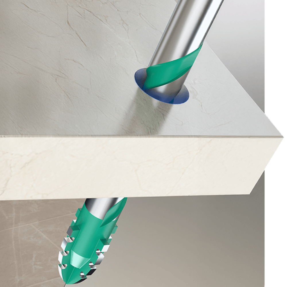 Mit MaxiDrill™ ist jedes Loch absolut gerade und sauber. Keine Risse oder Verrutschen auf Fliesen, sondern jedes Mal ein professionelles Ergebnis.